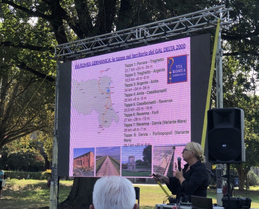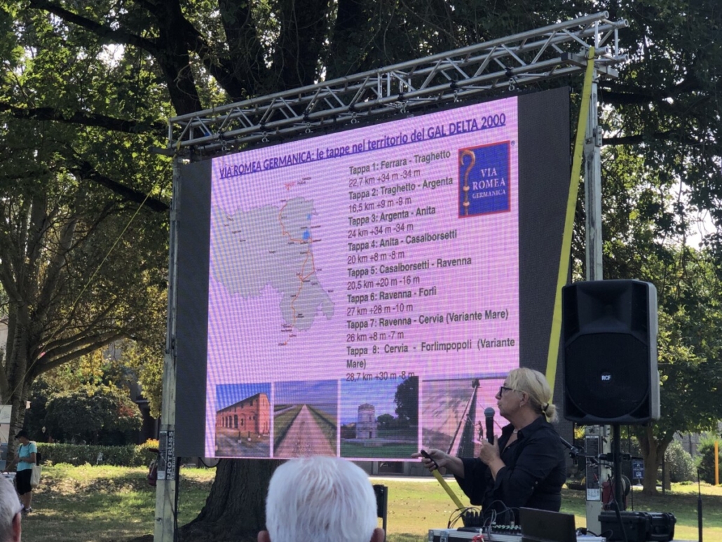 Su richiesta del GAL Delta2000, l’associazione italiana della Via Romea Germanica si impegna per la verifica dei percorsi a piedi e in bici, a progettare le bacheche illustrative e la segnaletica, a collaborare per la costruzione della rete degli operatori. Illustrato anche il grosso progetto dell’”autostrada della bicicletta” che lungo la Via Romea, dai Paesi del Nord Europa, indirizzerà i ciclisti lungo la penisola fino a Roma.
